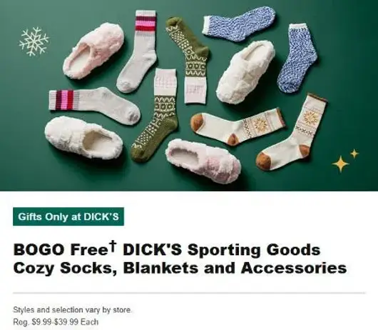 BOGO Free DICK'S Sporting Goods Cozy Socks, Blankets and Accessories